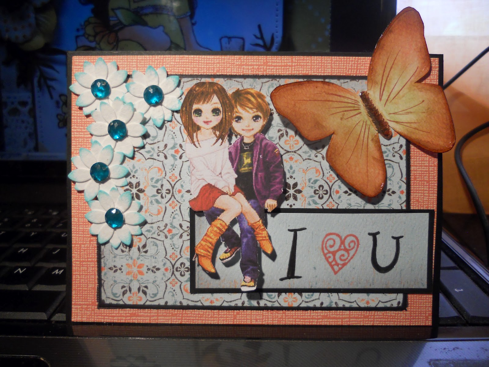 Estas son las primeras tarjetas de otras muchas que se que iré haciendo, pero por ser las primeras les tengo un especial cariño... Me gustan mucho las combinaciones de papeles y colores, las florecillas, las muñequitas... en fin, todo. Espero que os gusten tambien.